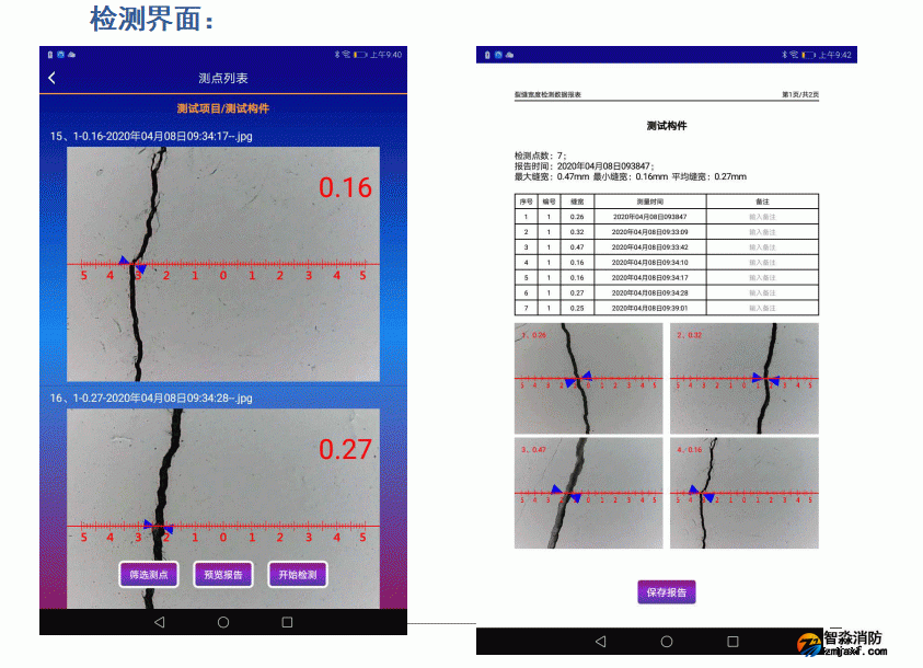 智能自動判讀不同方向裂縫寬度,也可人工判讀屏上寬度;