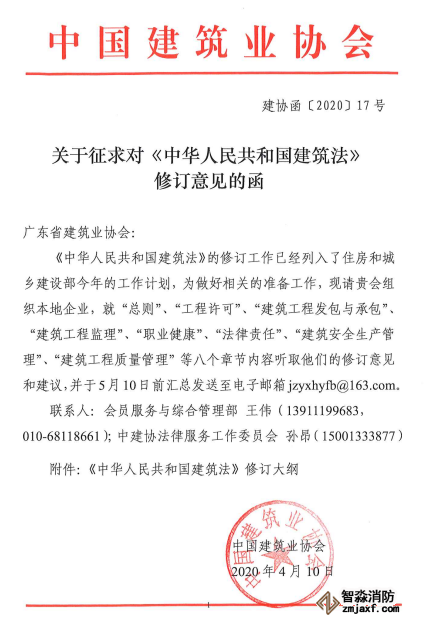 中國建筑業(yè)協(xié)會《關(guān)于征求對〈中華人民共和國建筑法〉修訂意見的函》