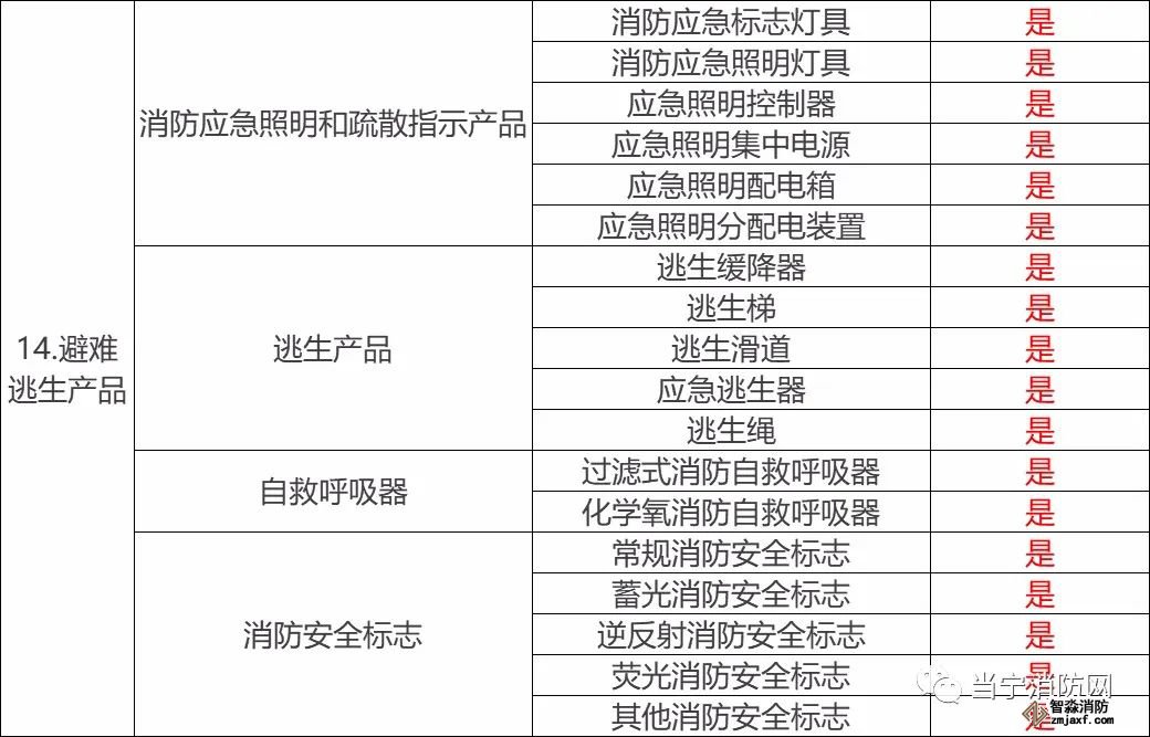 從圖中我們可以看出,目前大品類包括三類,有火災報警產品、滅火器和避難逃生產品,這些品類目錄下的消防產品是需要3C強制性認證的。每個大類下有包含子類。