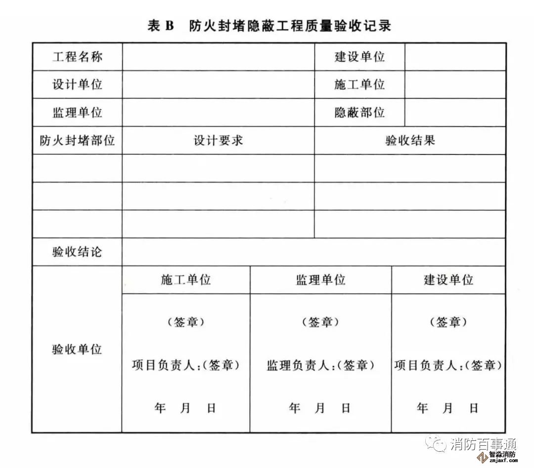 附錄B 防火封堵隱蔽工程質量驗收記錄