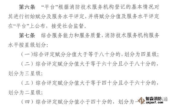 第六條 評分是由消防救援機構進行的,根據從業機構的條件,如果你想星級高,只有加強配套,對所有從業機構而言,弱肉強食是必然的結果。