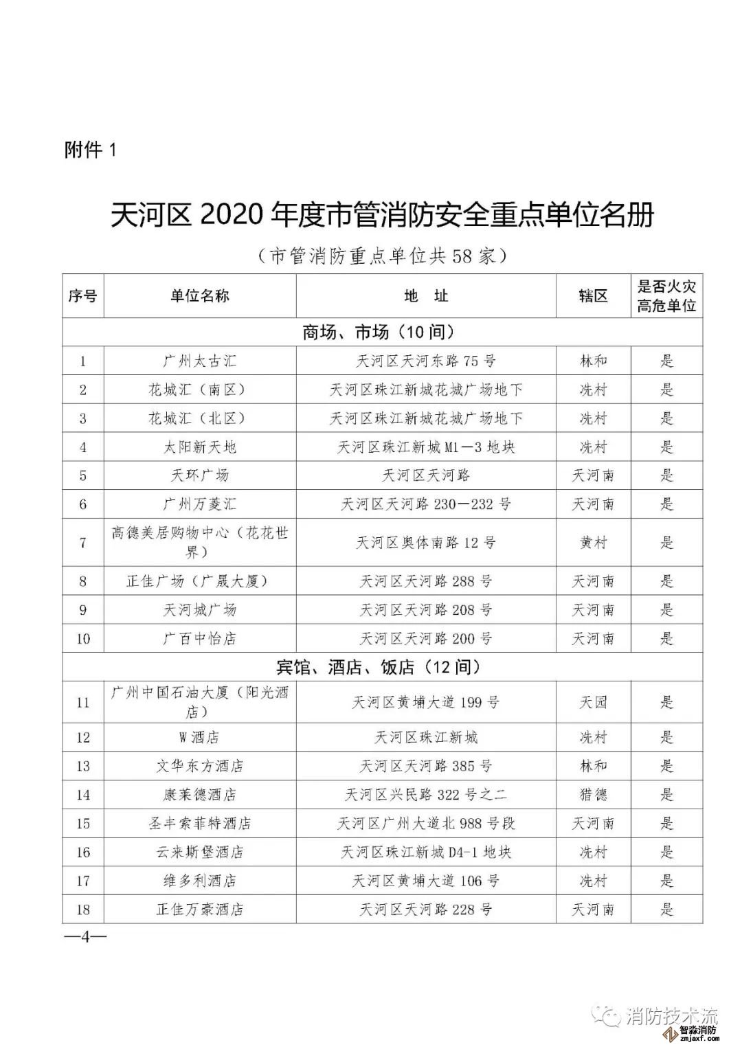 附件:1.天河區2020年度市管消防安全重點單位名冊