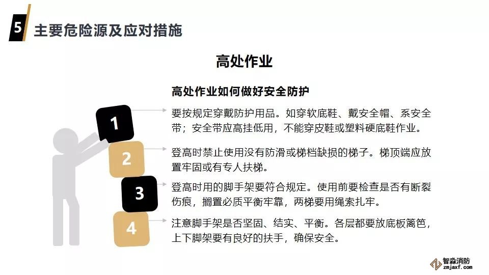 2、用梯(凳)作業時,扶梯(凳)人員必須注意自己周圍的環境,確保退路暢通并防止高處物件掉落傷人。