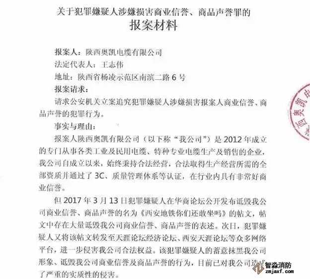 舉報帖發(fā)出后,陜西奧凱電纜有限公司不僅不承認問題,還反咬一口,聲稱該帖文中的不實言論損害了公司的聲譽,造成了極其嚴重的惡劣影響。