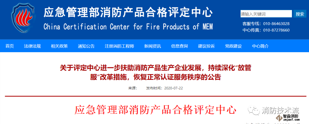 應急管理部消防產品合格評定中心8月1日起恢復正常認證服務秩序