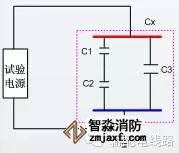 《電氣裝置安裝工程電氣設備交接試驗標準》(GB 50150-2006 )要求新竣工的電纜需要進行耐壓試驗,高壓電纜交流耐壓等效電路如下圖,用C1、C2、C3組合模擬被試電纜的各個絕緣部件,在試驗過程中C1、C2、C3同時承受高電壓的考驗。