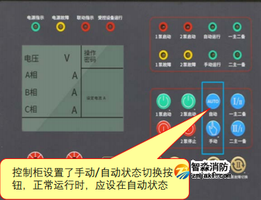 1.消防水泵控制柜在平時應使消防水泵處于自動啟泵狀態【圖示6】;