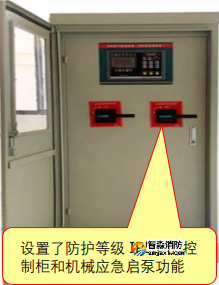 11.0.12消防水泵控制柜應設置機械應急啟泵功能,并應保證在控制柜內的控制線路發生故障時由有管理權限的人員在緊急時啟動消防水泵。機械應急啟動時,應確保消防水泵在報警5.0min內正常工作。【圖示8】