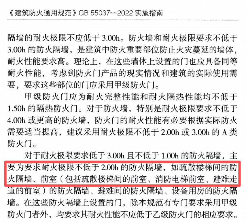 6.4.3 除建筑直通室外和屋面的門可采用普通門外,下列部位的門的耐火性能不應低于乙級防火門的要求,且其中建筑高度大于100m的建筑相應部位的門應為甲級防火門: